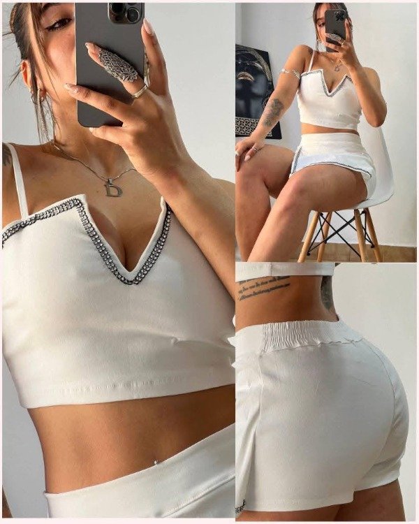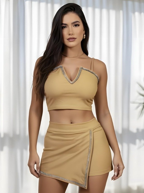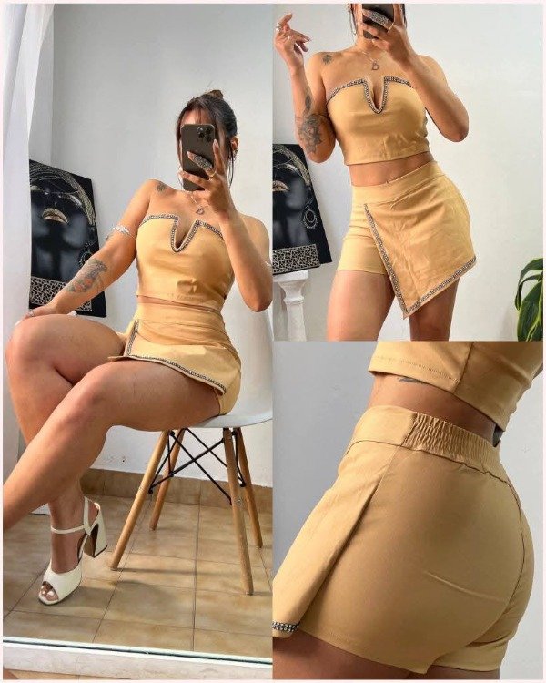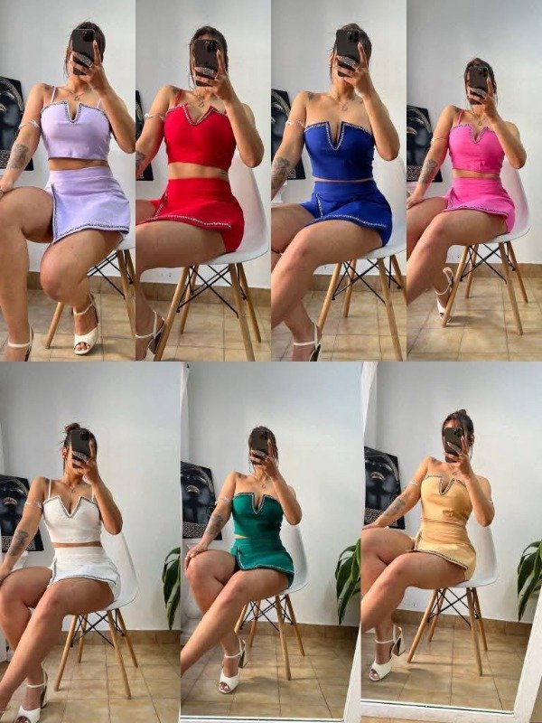 TOP Y SHORTS POLLERA CON BRILLO